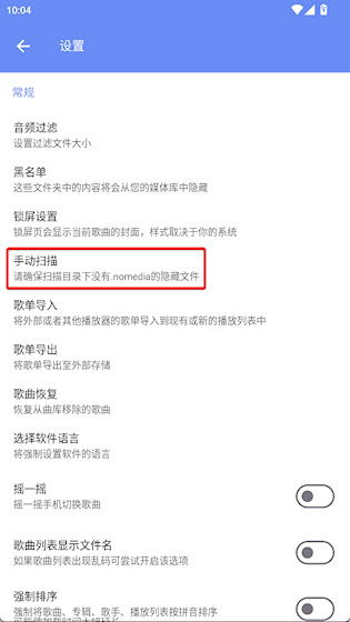 3、点击手动扫描,选择文件夹自动扫描歌曲