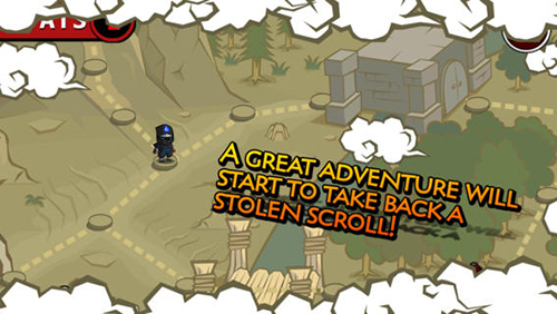 1、进入游戏后,首先会出现 Easy、Normal、Hard 三个难度模式供玩家选择;完成难度选择后,挑选角色,界面中会展示四个不同属性的忍者,有两个未解锁的角色(其中最右侧的为未解锁状态);角色选定后,会进入故事背景介绍环节,讲述卷轴被盗、师傅遇害,忍者们就此踏上寻回卷轴的复仇之路。