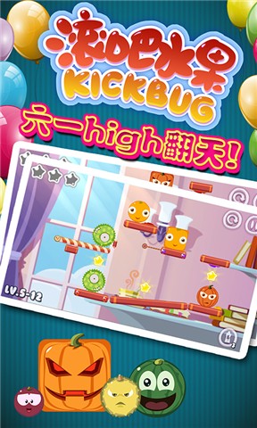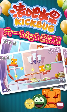 《滚吧,水果》是一款精品物理益智游戏,玩法易懂,操作简单,过程轻松,少有受挫感,非常适合喜欢轻松游戏的玩家。您只需以手指轻触水果,让水果们在“方”和“圆”间转换,以控制它们滚或不滚,通过它们滚动的力量将虫子赶下平台,并且较后自身还能安然停留就能过关!是不是很简单呢?不过,也不要太小瞧它了哦,在赶走虫子的路上会遇到一些星星,可是需要花费一些小脑筋才能把它们全部都吃掉呢。全三星通关也不是那么容易的!
