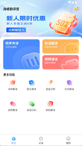 1、 同声传译:实时双向语音翻译,语音输入即译,双方无需轮流发言,突破语言障碍。