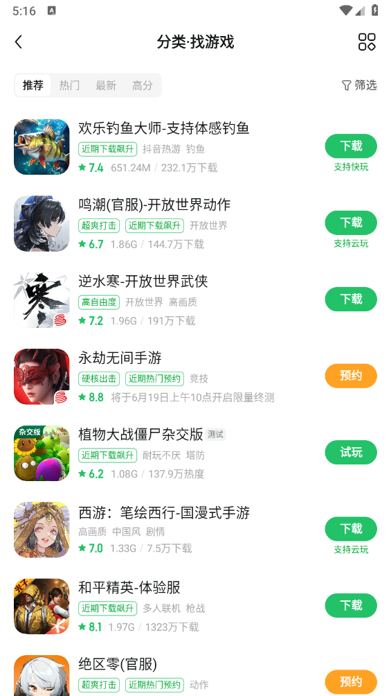 1、海量好游精准推荐,提供丰富选择,适配不同喜好,还有更多新功能可下载体验。