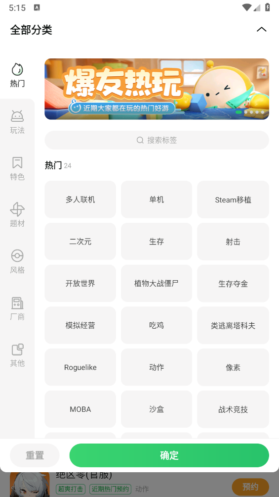 3、根据自身喜好选择游戏类型,通过分类筛选寻找想要游玩的游戏。