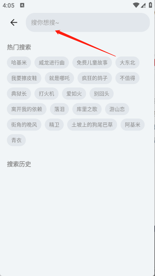 3、若想快速找到目标歌曲,可在搜索框输入关键词,搜索相关音乐、歌手或专辑。