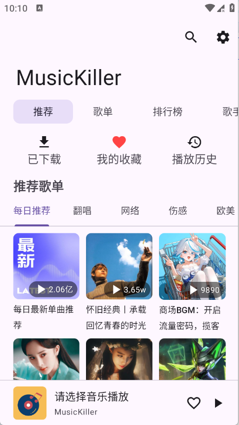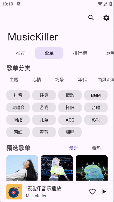 3、软件内的歌单板块将各类音乐进行详细归类,分类清晰,方便按喜好筛选心仪音乐。