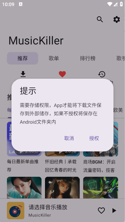 1、用户在地理教师下载网下载MusicKiller app,安装完成后打开应用,授予软件所需的相关权限。