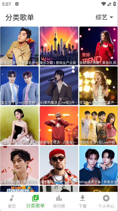 4、设有分类歌单与多维度排行榜,分类歌单涵盖音综流行、国风综艺等多种主题。