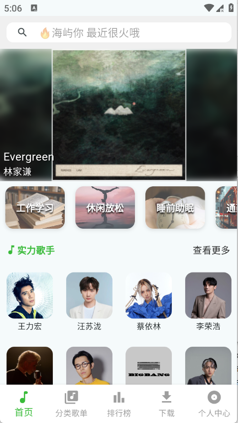 6、提供歌手排行功能,汇聚各类实力歌手,可直接进入歌手主页查看其全部作品。