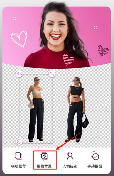 2、上传素材完成后,可将抠出的人像替换成心仪背景;