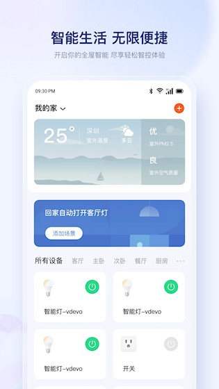 3、 界面直观易用:布局清晰简洁,设备卡片化展示,操作流程符合直觉,老人与儿童也能轻松上手,享受科技带来的便利。