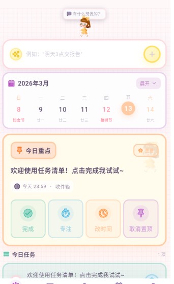 2、待办清单:清晰展示各类待办事项,可随时新建清单,便捷添加个人待办内容。