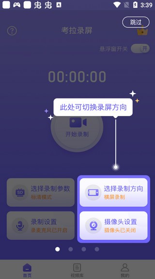 4、支持多种录屏方向,一键开启悬浮窗录屏,轻松录制各类高清视频。