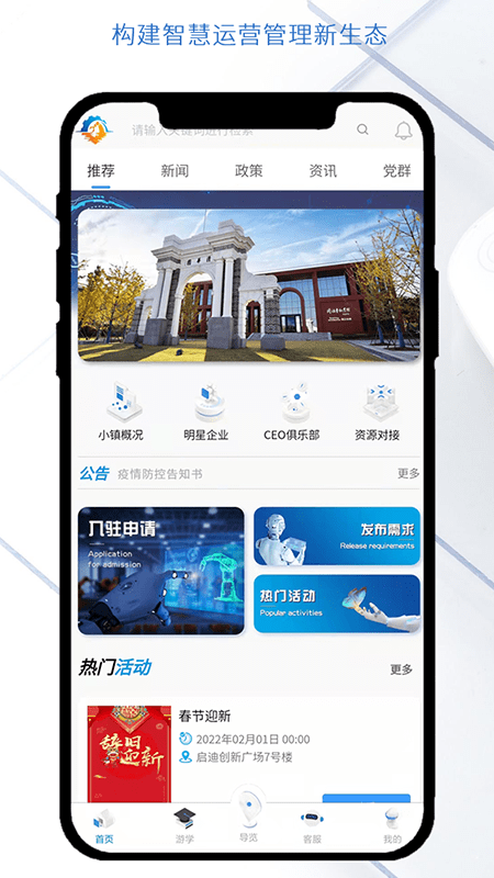 1. 资讯发布:发布小镇新闻、最新政策解读、党建活动、热门活动等资讯。