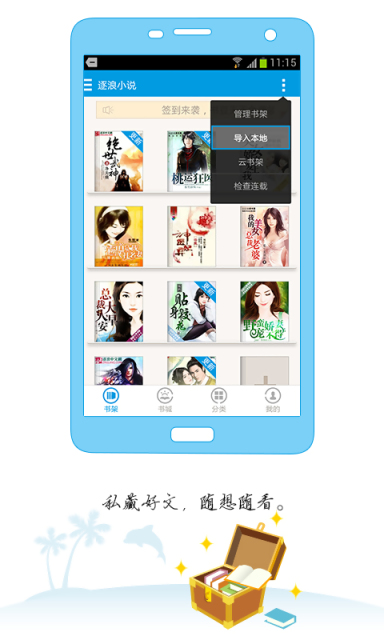 2. 集合在线阅读、自动书签、智能搜索、个性阅读、云书架、本地导入等多项人性化功能。