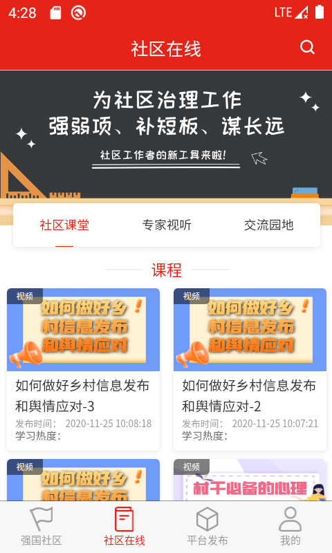 领头雁app是专为社区的小伙伴们而打造的线上学习培训软件,大家可以更好的治理社区。平台上为大家提供了很多的社区动态资讯,并且还可以通过平台进行社工培训,带给大家最好的社区生活,并且还提供了水电缴费,报事报修等等功能,使用起来非常便捷。