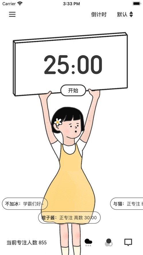 很多小伙伴的自制力和专注力都非常的差,经常在学习工作的时候喜欢玩手机,看别的东西,为了帮助大家改掉这样的坏习惯,带来了一款软件《一起专注》给大家,能够和小伙伴一起互动打卡,进行监督,设定自己的目标,在规定的时间完成,通过有趣的玩法,让大家戒掉手机瘾,轻松愉快的进行工作和学习。