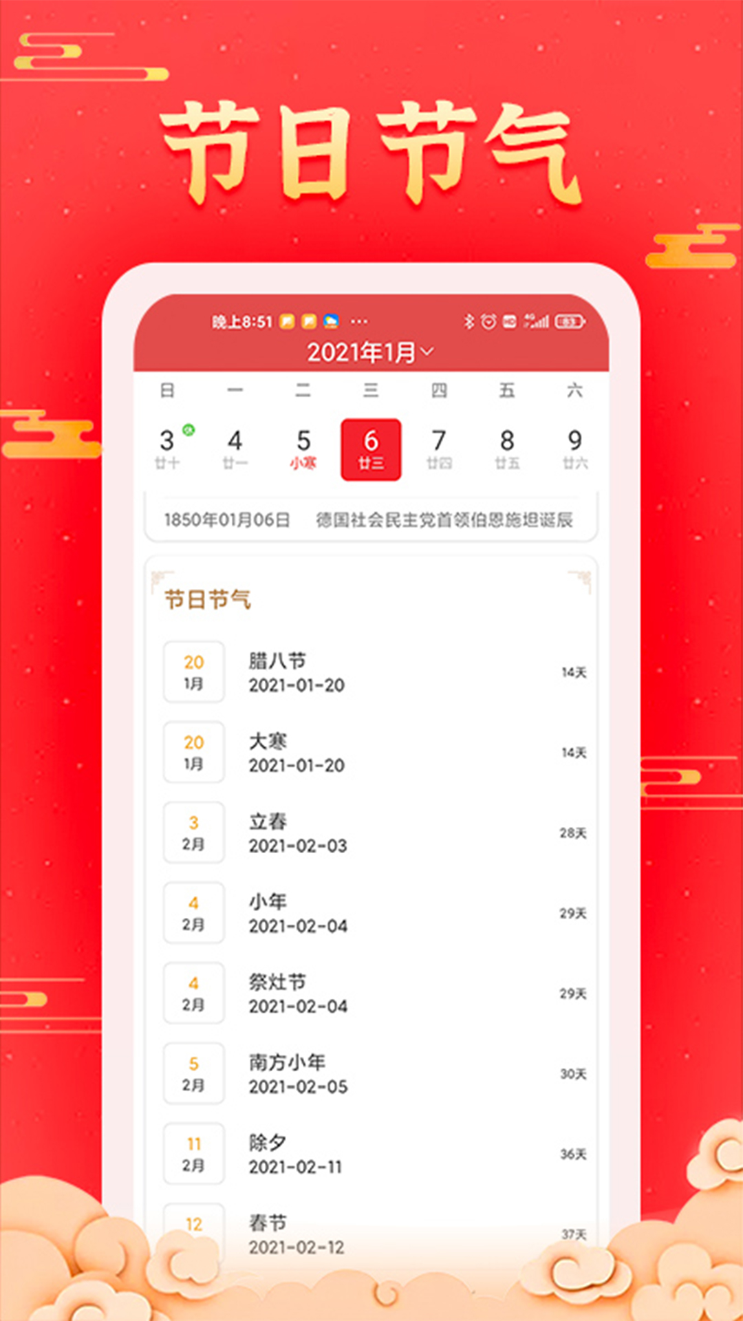 2、【日历】农历黄历随便看,假日节气都齐全;