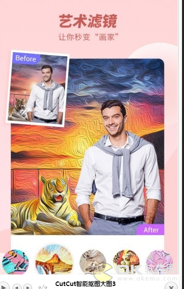 3. 丰富的创作功能:除了基本的抠图和背景替换功能外,cutcut智能抠图还提供了多种滤镜、贴纸等创作工具,满足用户的多样化需求。