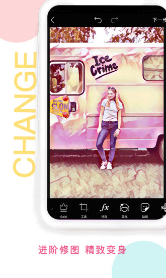 1、图片编辑:大量图片操作,蒙版、拼贴画、框架、相框、贴纸、文字特效、剪贴画图形、标注、裁剪、旋转、色彩调整,以及更多其他功能!