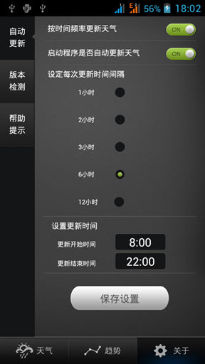 天气冷暖趋势图,天气信息定时刷新,天气信息分享好友.