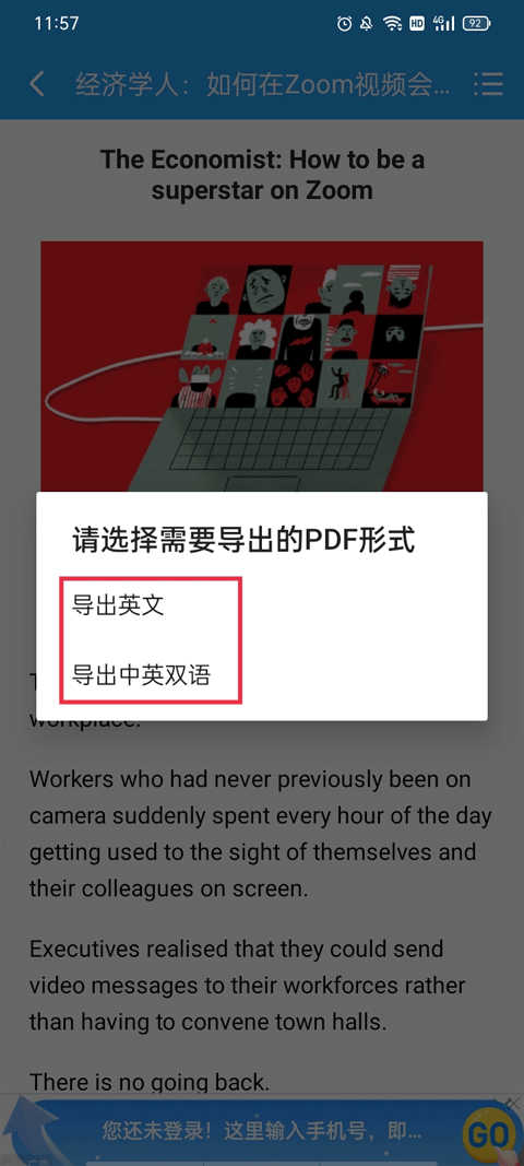3、挑选想要导出的文章PDF形式,确认后进入下一步操作。
