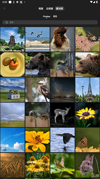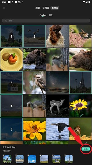 2、选择需要导入的素材,可以选择自己手机相册里的图片或者视频,也可以使用素材库里的。