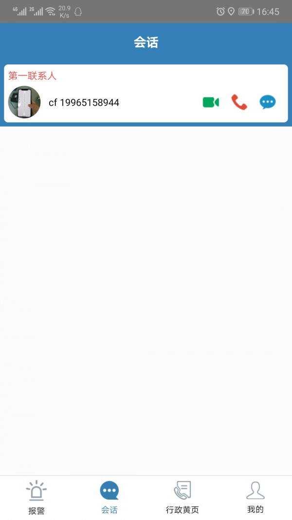 用户下载APP后,点击报警,会快速接入政府报警平台,可以进行语音、视频对讲。