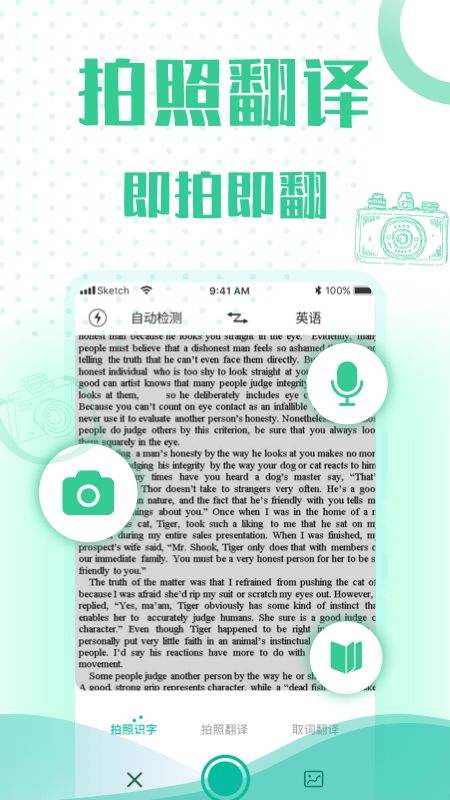 3、语音实时翻译到语音,支持中英互译即时播报。