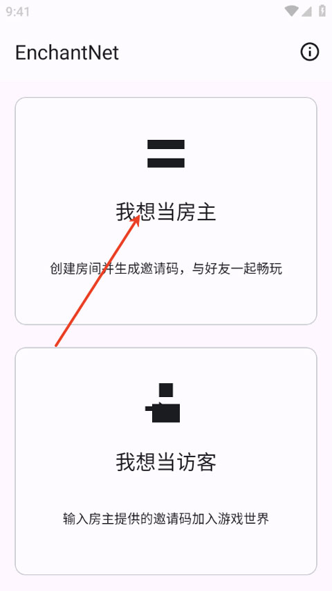 2、选择“我要当房主”或“我要当访客”。