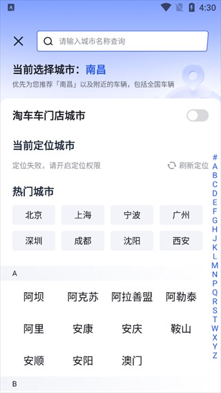 1、选择所在城市,系统会优先推荐该城市及附近车辆,同时涵盖全国车辆资源;