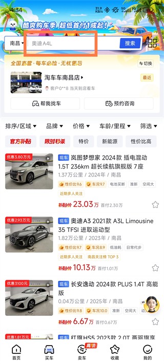 3、系统会自动推荐合适车辆,也可直接搜索心仪汽车品牌精准查找;