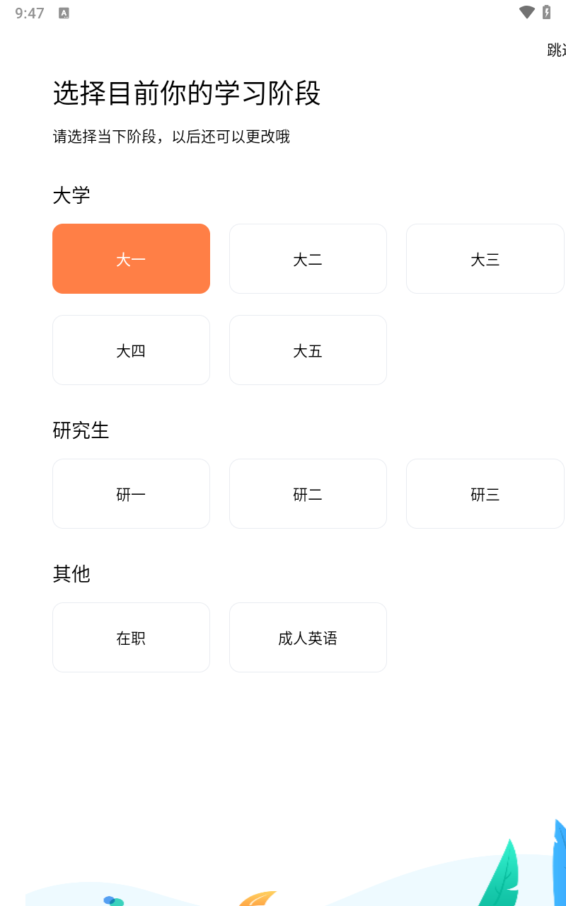 2、点击同意后选择自己所在年级;