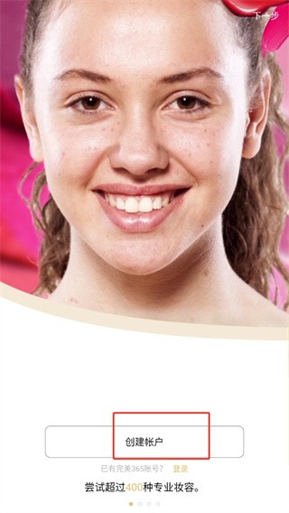1、打开完美365相机APP,进入软件主界面后,点击【创建账户】选项。