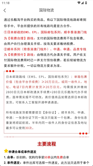 2、点击国际物流可以查看物流配送规则