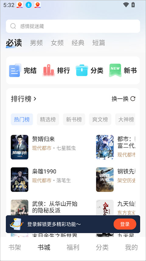 拥有国内领先的高品质正版书库,涵盖全类别热门图书。热门IP与大神新作实时更新,并依据热门趋势和用户喜好精准推送,让你选书无忧。