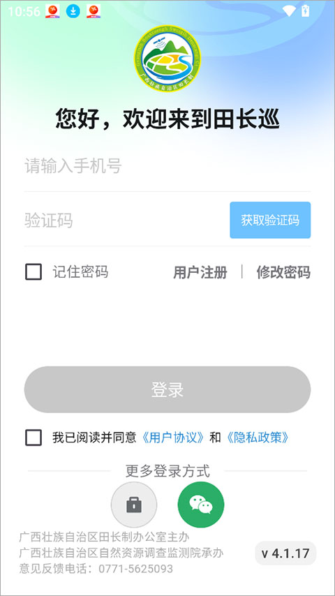 1、打开田长巡app,首先完成注册与登录操作。