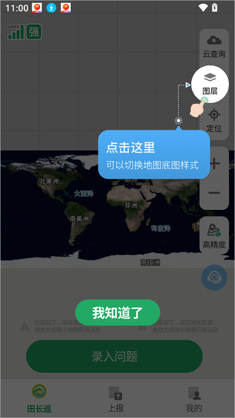 5、app中的图层功能,可以帮助田长们快速切换地图底图样式,便于对区域管理的农田形成大致整体了解。