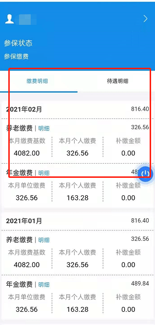 第三步:点开“参保缴费”显示本人“缴费明细”和“待遇明细”