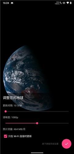 2、可设定最少10分钟自动更新一次画面,所以你的手机桌布就会是10分钟前的地球。