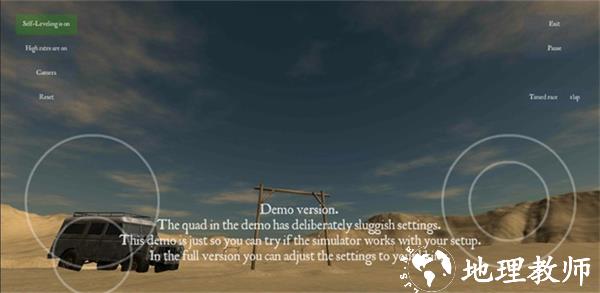 3、演示含一个沙漠场景;FPV Freerider 完整版含六个场景及赛道生成器,可生成数百万条赛道;完整版还具备速率、相机、物理设置选项,及反向飞行的 3D 飞行模式,且支持 Google Cardboard 风格 vr 护目镜。