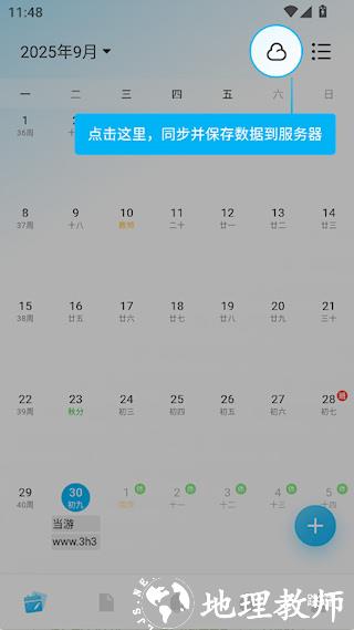 3、可以在日历中看到任务,点击上方按钮同步到服务器