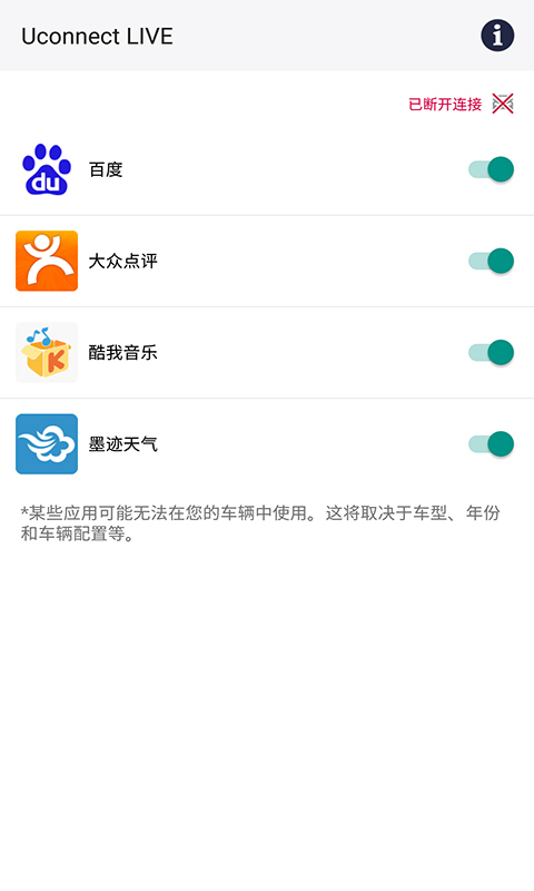 1. 新增应用程序:uconnect live不断更新,新增了如百度发送到车、酷我音乐、大众点评、墨迹天气等应用程序,为用户提供更多优质服务。