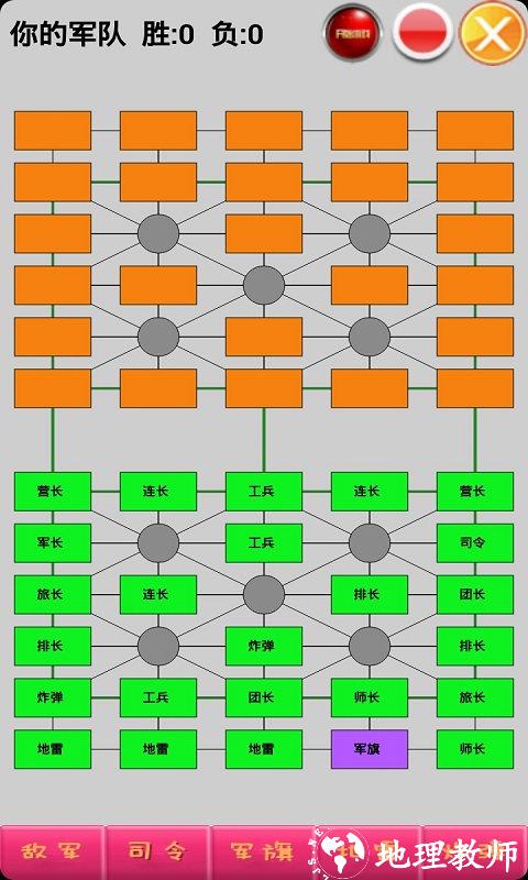 暗战军旗是一款80年代儿时的游戏,该游戏以现代军队等级制度为基础,分别为军官军衔高的吃掉军衔低的,较高的单位为军旗,较低的单位为工兵。“地雷”能炸死任何一个单位,但不包括工兵,因为工兵可以拆地雷。“炸弹”能炸死任何单位,这里包括工兵,但炸弹不能炸掉军旗。而要杀死军旗除了地雷其他都可以。