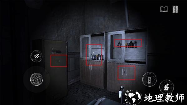 3、左侧按钮可控制角色移动与跳跃,右侧按钮能打开手电、控制角色蹲下等。