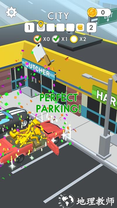 1. 游戏目标:驾驶汽车在各种复杂的赛道上完成特技跳跃,并以创意的方式停车,成功挑战各个关卡。