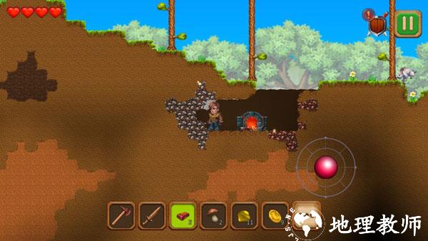 使用镐挖掘泥土,石头和物品。用锤子摧毁像素墙,尝试找到会让你对怪物部分隐形或对熔岩造成无敌的文物都是玩家的目标。