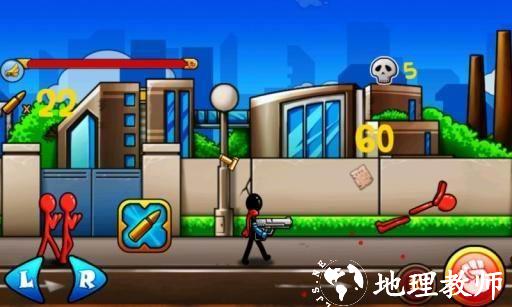 《超级火柴人大战2》是一款火柴人动作游戏,游戏中玩家扮演的是主角黑色火柴人,为了生存要不断的击败出现的其他火柴人,游戏中除了要不断打败敌人之外,还要不停的小心走位,避免被其他火柴人背后偷袭。游戏操作采用虚拟按键,L是向左,R是向右,右下方是出招的按钮,中间会有道具掉下来,点击道具就可以更换道具了。喜欢动作游戏的玩家可以来挑战一下,让你玩到HIGH。