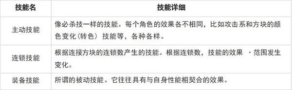 每个角色都有3种技能。是否能很好地运用主动技能和连锁技能进行战斗是非常重要的。 根据角色的不同,技能的效果也各不相同,所以用能形成配合的角色来方便战斗吧。