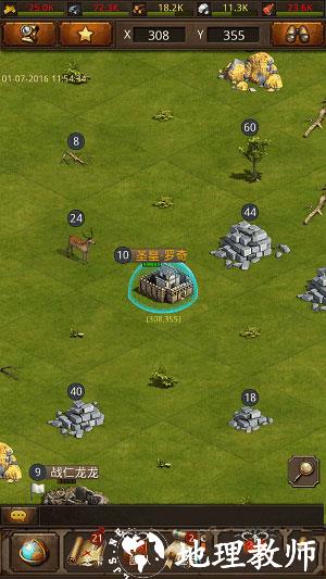 在收藏列表可以查看世界地图中收藏过的玩家的坐标,收藏列表有3个分类分别是:资源、好友、敌对,下方可以选择指定分类查看,是不是很方便呢,点击右边的放大镜按钮可以快速达到指定坐标的世界地图界面,是直接攻打还是先侦查,需要您对自己实力有把握哦。