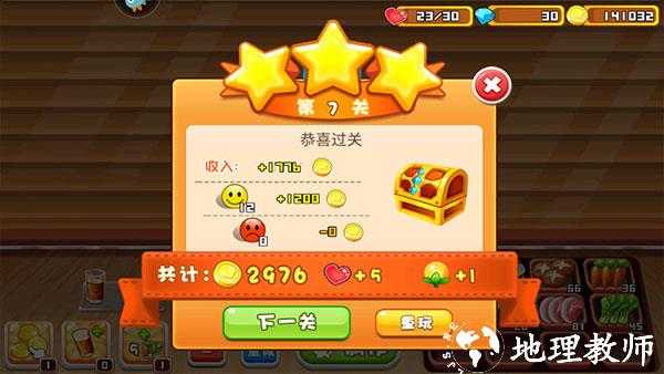 8、关卡达到 3 星评价可得到大量奖励,能补充体验过程中消耗的道具、食材与体力。