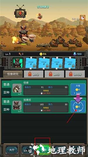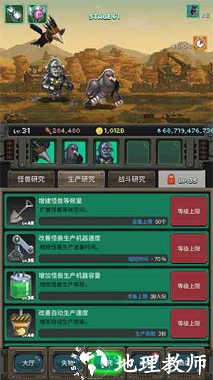 4、随着体验难度逐渐提高,点击 “研究” 功能可对怪兽进行升级,提升怪兽的战斗能力。